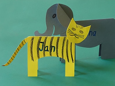 Du kannst auch einen Tischkarten – Tiger basteln. Der sieht sehr freundlich aus.