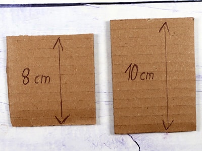 • Schneide ein 8 cm und ein 10 cm langes Stück aus Pappkarton aus.